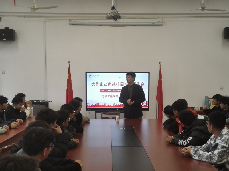 为了教育引导学生做好学业及职业规划,激励广大青年学子奋发进取,11月15日上午,电子工程学院于致知楼二楼会议室举办优秀企业家进校园专题报告会。此次报告会由2007级微电子学专业校友张伟主讲,报告会由电子工程学院党委副书记刘雪刚主持,微电子科学与工程专业的同学参会。