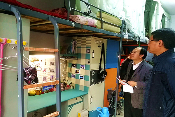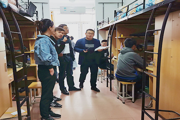 为加强宿舍管理,推动宿舍文化建设,改善宿舍环境,营造良好的宿舍氛围,强化宿舍育人的功能,11月11日下午五点,艺术学院分党委书记王光富、副院长褚春元、专职辅导员及院学生会生活部相关学生一道察看了19级新生宿舍,并开展了文明宿舍评比。