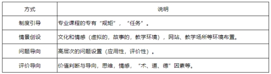 “课程思政”引导方式要坚持灌输与渗透相结合、显性教育与隐性教育相结合的原则。灌输与渗透相结合就是坚持春风化雨的方式,通过不同的选择,从被 动、自发的学习转向主动、自觉的学习,主动将之付诸实践。通过隐•性渗透、寓 道德教育于课程之中,通过润物细无声、滴水穿石的方式,实现显性教育与隐性 教育的有机结合。