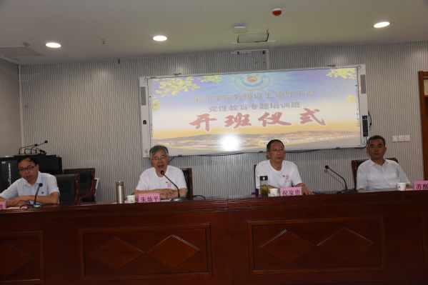 朱灿平作动员讲话,他从诗人贺敬之的诗歌《回延安》谈起,表示全体干部此次是怀着崇高的理想和敬畏的态度踏入红色故土学习培训,开展培训是加强学校党员干部党性修养,提升干部综合素质的重要途径,是开展“不忘初心、牢记使命”主题教育的一次“热身运动”;参加培训的全体学员要高度重视,珍惜机会,做到学有所思、思有所悟、悟有所获。为达到培训效果,他要求全体学员,一是要深刻领会举办此次培训班的重要意义,将学习延安精神作为领导干部党性教育的必修课,进一步加深对延安精神的了解和认识;二是要全面准确把握本次培训的重要内容,坚定理想信念,自觉传承好、发扬好、践行好延安精神;三是学用结合推动学校事业发展,充分发扬理论联系实际的学风,真正把学习的收获转化为推动学校“十三五”事业发展等工作的实际本领。同时,朱灿平还对培训纪律作了强调,他要求所有学员要摆正心态和位置,进入学员角色,服从管理,严格遵守中央八项规定精神和学员管理规定,圆满完成培训各项任务。