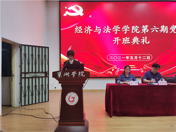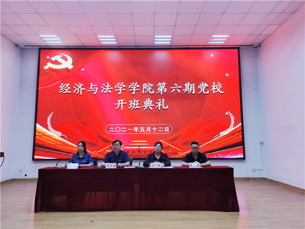 为进一步提高入党积极分子的思想政治素质和理论水平,贯彻落实中国共产党党员发展工作相关规定,做好组织培训工作,经济与法学学院于5月12日晚在求实楼一楼报告厅举办第六期入党积极分子党校开班典礼。开班典礼由经法学院第六期党校培训班班主任李陈主持,出席典礼的有经法学院党委书记王万海、副书记孙玮,各学生支部书记以及全体专职辅导员。