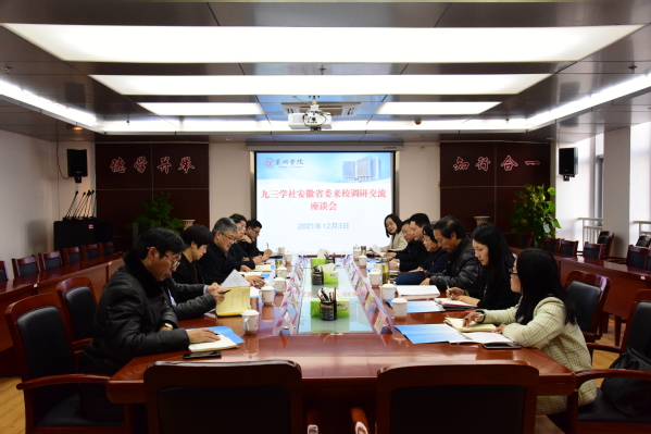 12月3日下午,省政协常委、九三学社安徽省委专职副主委、监督委主任张腊梅率九三学社省委一行来学校走访调研,九三学社合肥市委、九三学社巢湖市基层委有关人员陪同。校党委副书记阮爱民热情接待了张腊梅一行,校党委统战部、九三学社awc777万象城娱乐官网支社相关人员参加了调研座谈会。