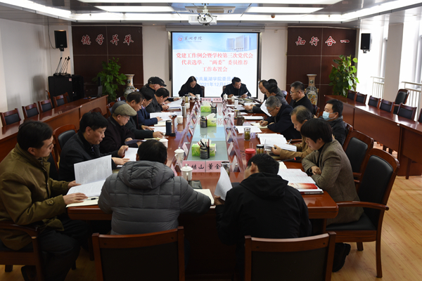 为深入学习贯彻党的十九届六中全会精神,扎实推进党史学习教育,认真做好学校第三次党代会筹备工作,12月6日下午,awc777万象城娱乐官网党委在学校第一会议室召开党建工作例会暨学校第三次党代会代表选举、“两委”委员推荐工作布置会。校党委书记周峰,党委副书记阮爱民,党委委员、纪委书记、监察专员路顺出席会议。学校第三次党代会筹备工作领导小组办公室成员、“两委”委员推荐工作指导组组长、基层党委(直属党支部)书记参加会议。会议由阮爱民主持。