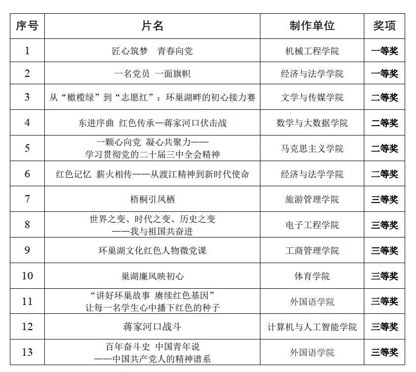 根据《关于报送党员教育电视片、微党课的通知》要求,经二级党组织报送,党委组织部组织相关单位开展评选,共评出一等奖2项,二等奖4项,三等奖7项。现将相关名单公示如下: