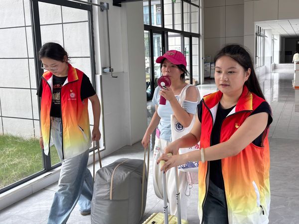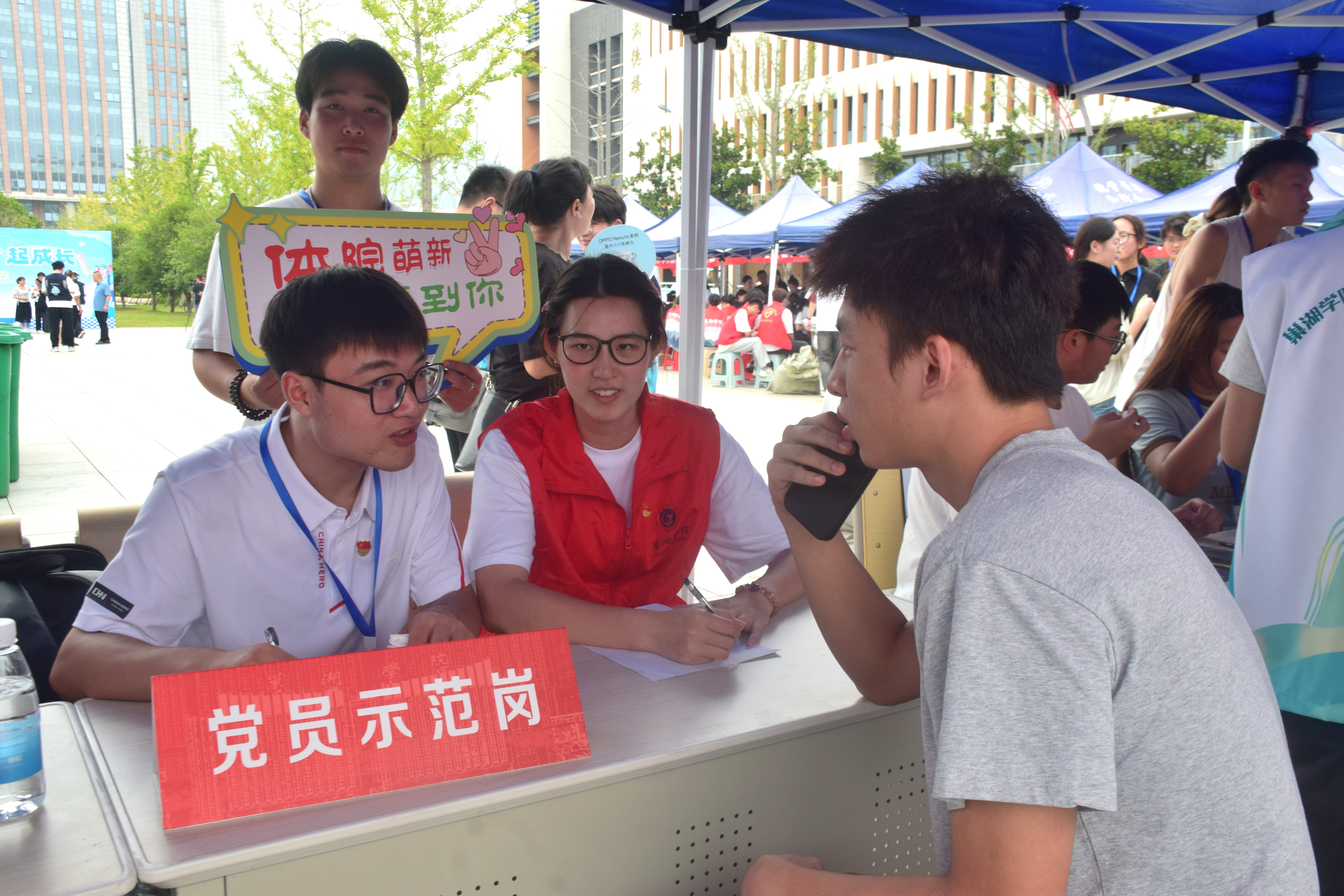 迎新期间,学校党委在环巢湖文化展馆、服务台和各学院迎新点设立党员示范岗,党员同志主动亮身份,统一佩戴党员徽章,为新生及家长介绍专业特色、环巢湖文化、校园生活和发展党员等相关疑问,全程引导办理入学手续,如安排讲解员在环巢湖文化展馆进行讲解等;面对新生行李多、搬运不便的情况,党员志愿者率先垂范,主动扛起服务重任,用心用情做好服务工作,真正践行“一名党员就是一面旗帜”的庄严承诺。