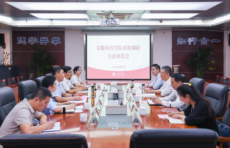 曹付忠对学校的热情接待表示感谢,对近年来学校发展取得的成绩表示祝贺,并介绍了安徽科技学院的基本情况和此次调研的主要内容。他表示,希望以此次调研为契机,进一步加强双方的沟通交流、深化合作,强化优势互助,在教育教学和人才培养等领域形成合力。