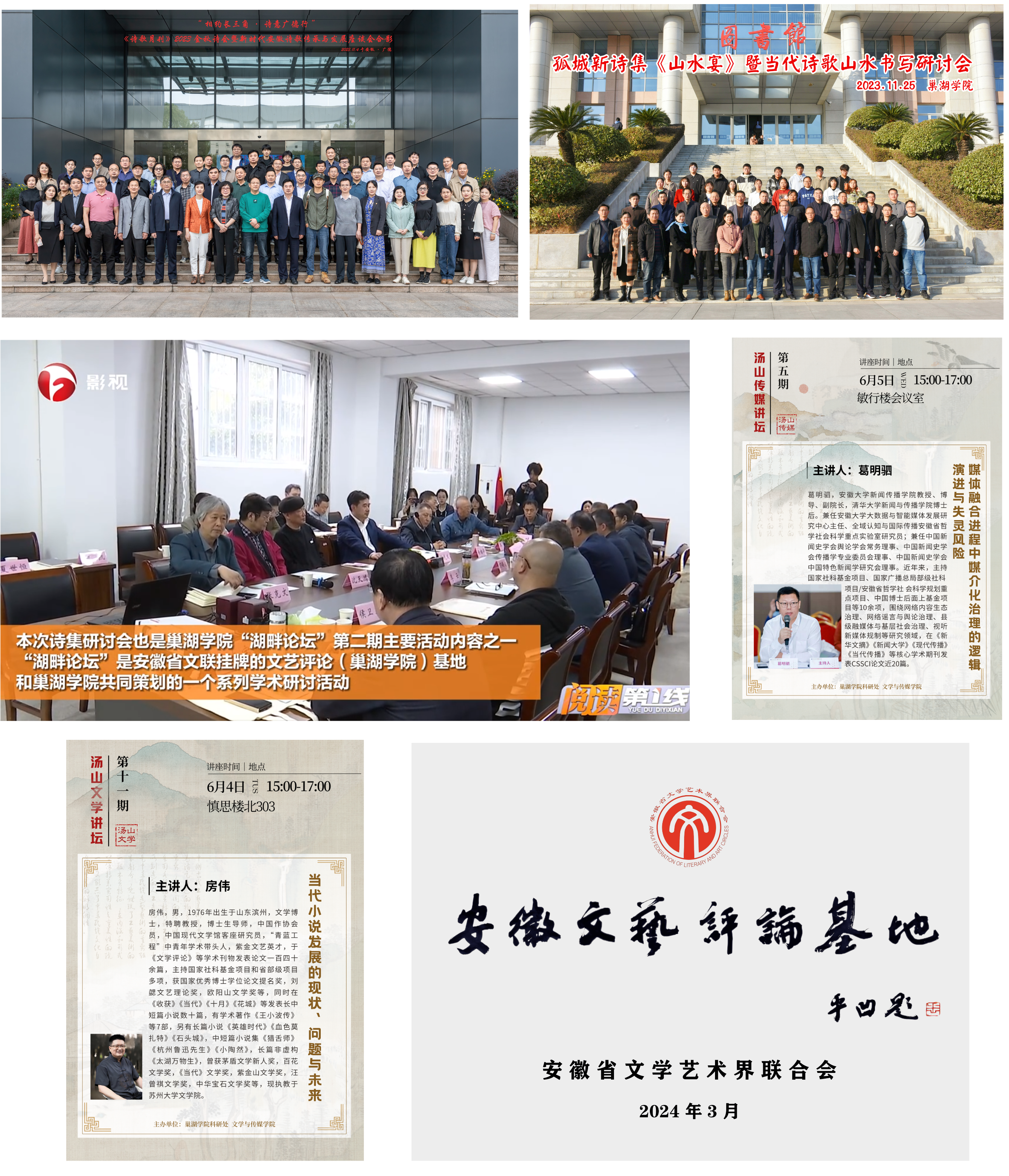 学院认真贯彻落实习近平总书记关于文艺工作重要论述和省委关于“增强安徽文化归属感,促进人民精神生活共同富裕”号召与要求,依托“安徽文艺评论(awc777万象城娱乐官网)基地”平台,与安徽省文联合作,集聚研究力量,形成现当代文学研究与现场评论、安徽古代文艺文献整理与研究、安徽艺术批评与传媒研究三个研究方向,致力于服务安徽文艺高质量发展、服务文艺皖军再出发,探索建构文艺研究与批评的“安徽路径”,助推新时代“皖派学术”发展和文化强省建设。近年来,学院举办皖籍作家作品研讨会、皖籍作家进课堂活动数场;教师发表安徽文艺研究相关论文20余篇,出版相关专著2部;1名教师当选为中国小说学会理事,2名教师当选为合肥市作家协会副主席。